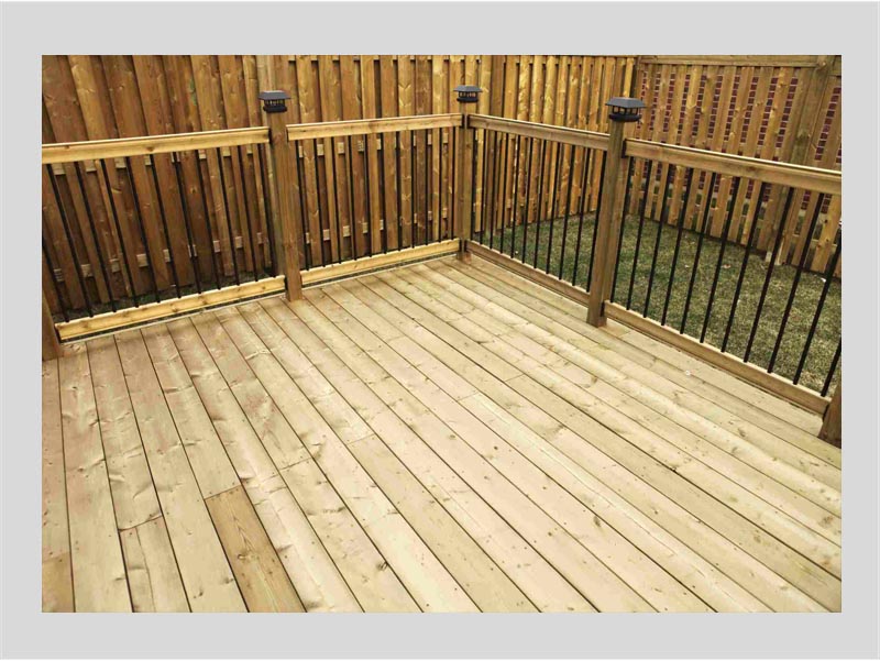 Pressure-treated wood, which is the most common and affordable decking choice. It is a great choice for bigger decks and smaller budgets. But pressure-treated wood requires yearly sanding, painting or oiling for lasting results.